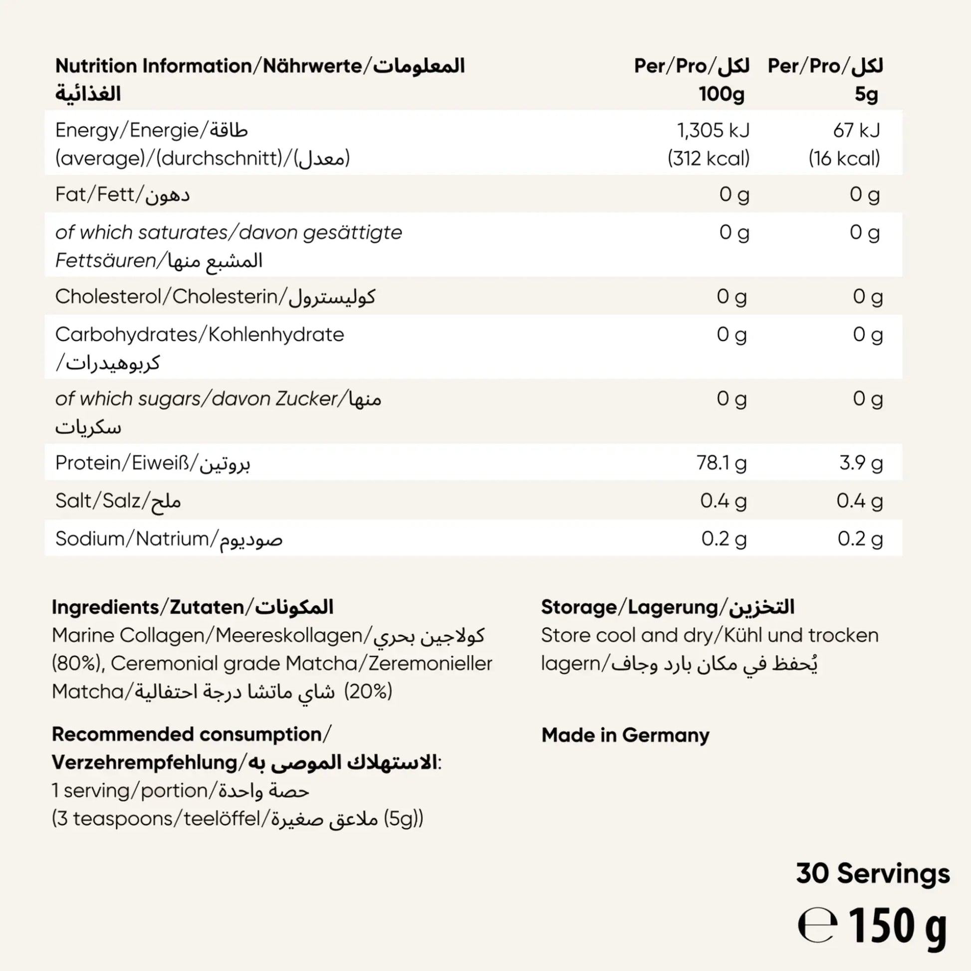 German Marine Collagen & Japanese Ceremonial Grade Matcha.